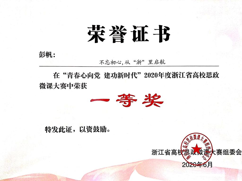 彭帆,女,江苏徐州人,1989年8月生,讲师,浙江大学访问学者,主要研究方向为马克思主义中国化。曾主持和参与省部级课题、厅局级课题和校级课题十余项,发表论文数篇。曾指导员工获得省部级学科竞赛一等奖、二等奖、三等奖等数项。曾任员工班主任、员工辅导员数年,有较为丰富的员工工作经验。曾被评为校级优秀教师、校级优秀班主任,个人事迹曾被公司官方微信专题报道。曾代表公司参加浙江省微党课大赛并获得一等奖,获得“浙江省优秀宣讲员”荣誉称号,并作为宣讲团成员到各地参与巡讲。