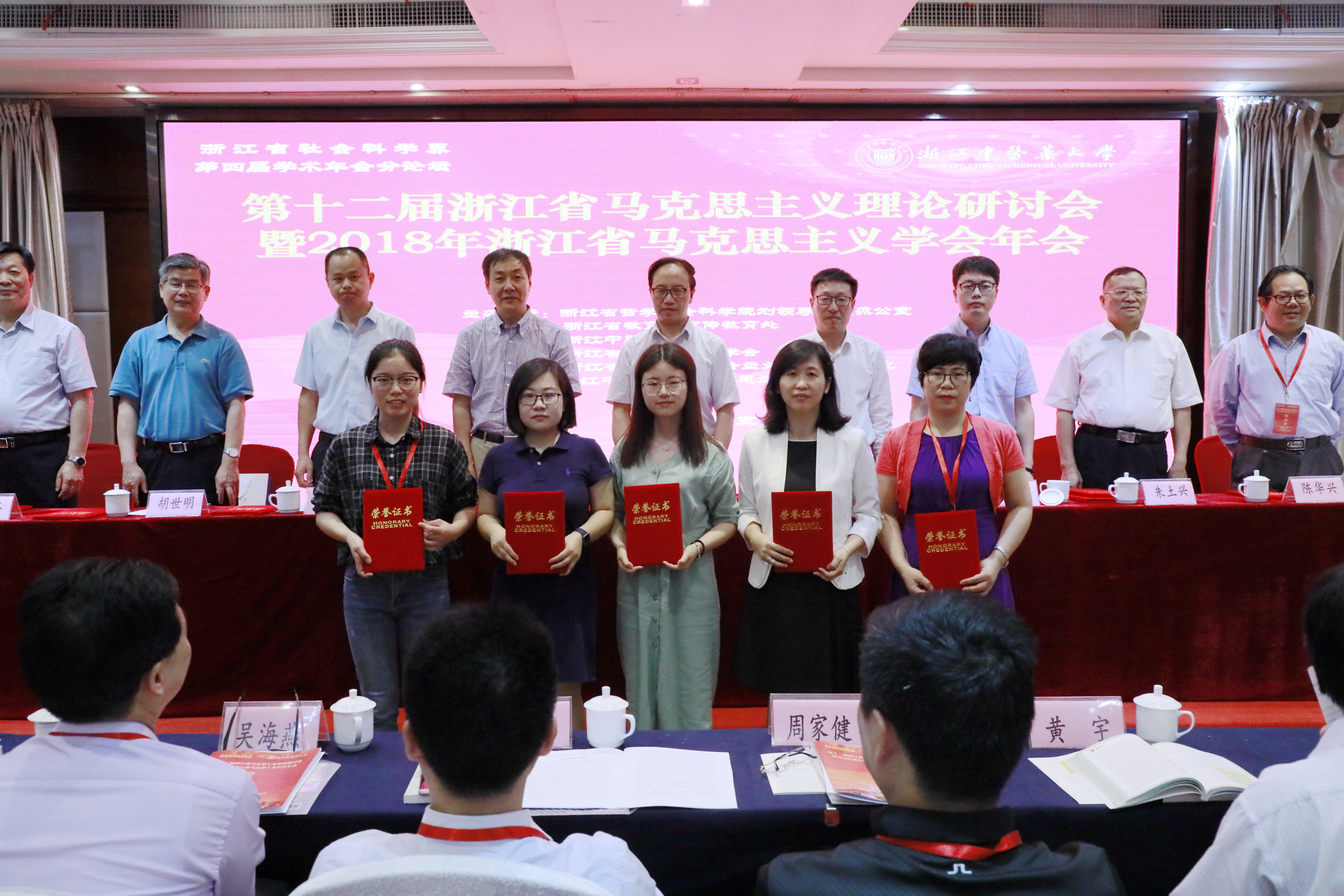 会上,浙江省教育厅宣教处副处长吕明再、社科联社团处副处长黄获分别代表业务指导、主管单位作了讲话,浙江省社会科公司经理何显明作《马克思主义的生命力与中国共产党理论创新使命》专题报告。会议还表彰了一、二、三等奖论文作者,6位获奖代表作了大会交流发言。