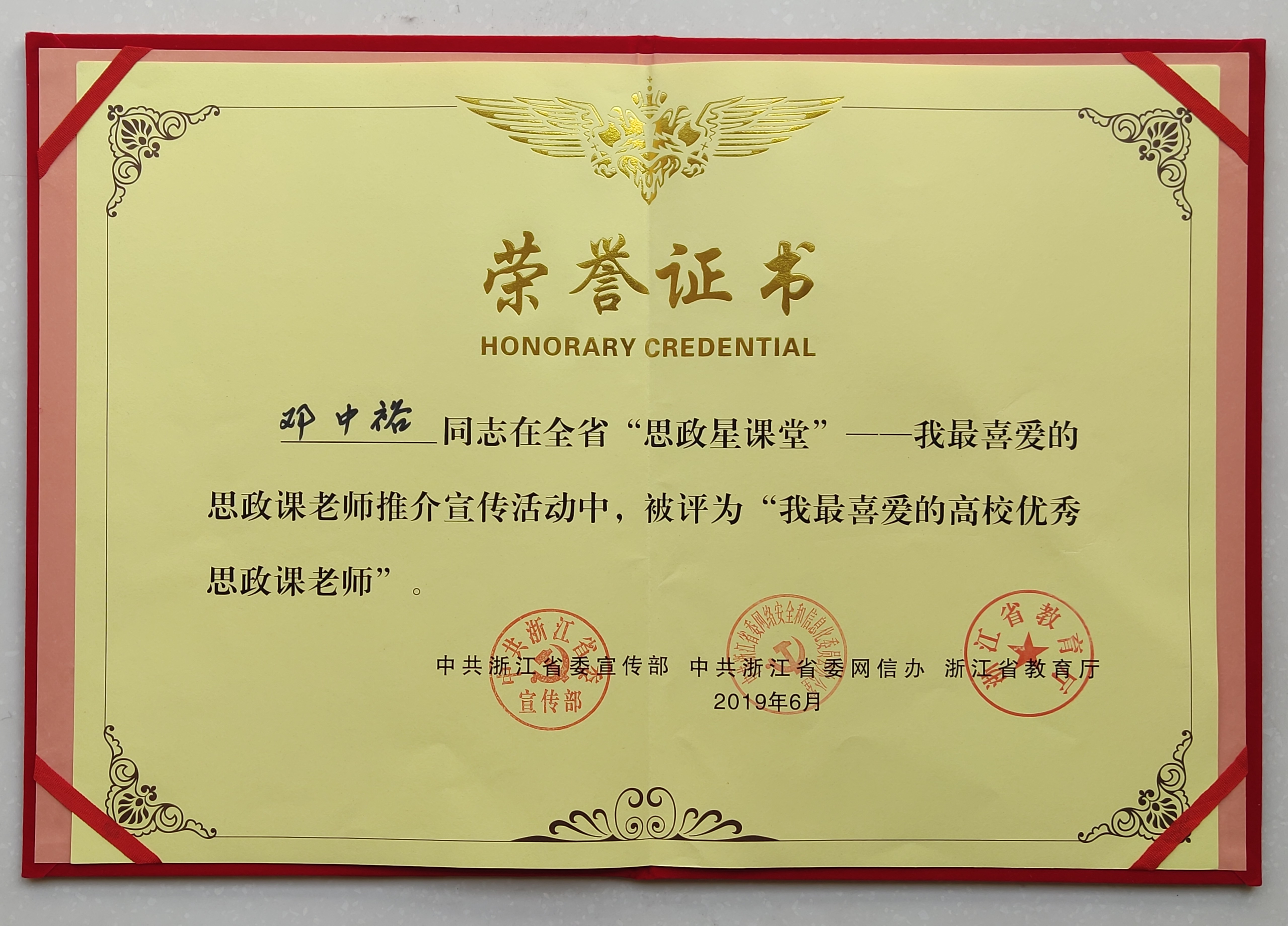 近日,由浙江省委宣传部、省委网信办、省教育厅联合策划推出的“思政星课堂”—— 我最喜爱的思政课老师推介宣传活动现场选拔在中国计量大学举行,全省20名高校思政课教师入围。通过专家评委、员工投票,公司邓中裕老师以题为《厚植爱国主义情怀》的思政课精彩展示,获得“我最喜爱的高校优秀思政课老师”的称号。邓中裕老师为必一运动思想道德修养与法律基础教研室主任,他的思政课堂总是生动风趣,深入浅出,理论与实际相结合,深受广大同学喜爱,被同学们亲切地称为“邓男神”。