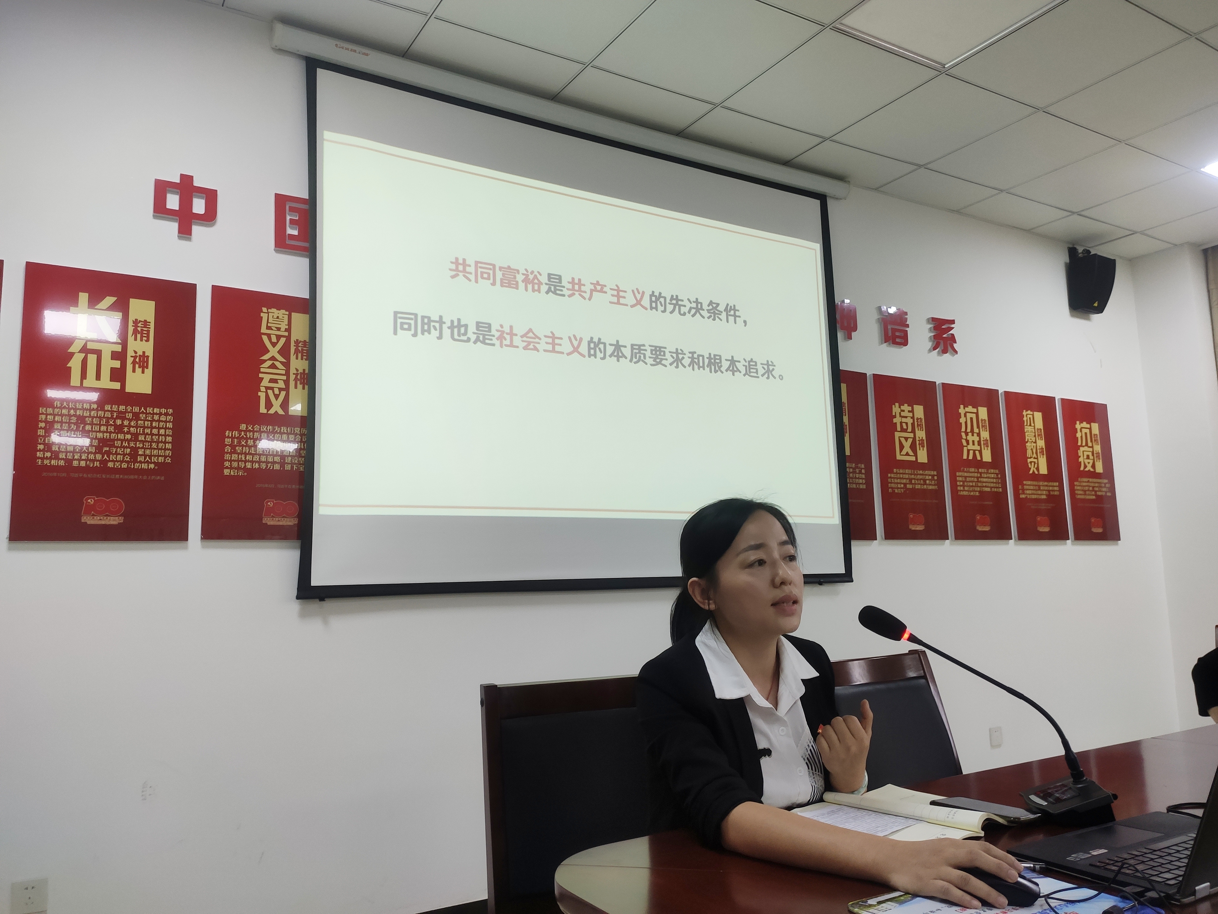 本次学习会邀请公司徐艳副教授为大家作《共同富裕——“浙”里起航》专题宣讲。“共同富裕是共产主义的先决条件,同时也是社会主义的本质要求和根本追求”,徐艳由习近平总书记关于“共同富裕”的系列重要讲话中引出主题,从共同富裕的科学内涵、共同富裕示范区、共同富裕的实现途径等方面阐述了宣讲活动的重点。她表示,作为一名思政课教师,应该牢记立德树人使命,上好每一堂思政课,切实担起新时代育人之大使命,把奋斗融入浙江省忠实实践“八八战略”、奋力打造“重要窗口”、争创社会主义现代化先行省、高质量发展建设共同富裕示范区的新征程中。