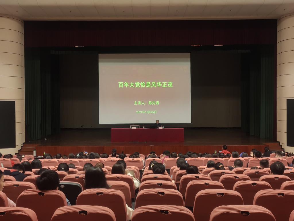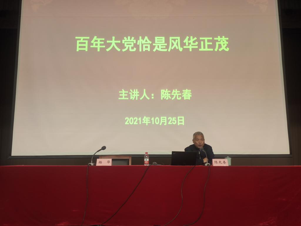 10月25日晚,省社科联副主席陈先春应邀为2021级400余名研究生作题为“百年大党恰是风华正茂”的课程讲座。讲座由必一运动经理杨华主持。