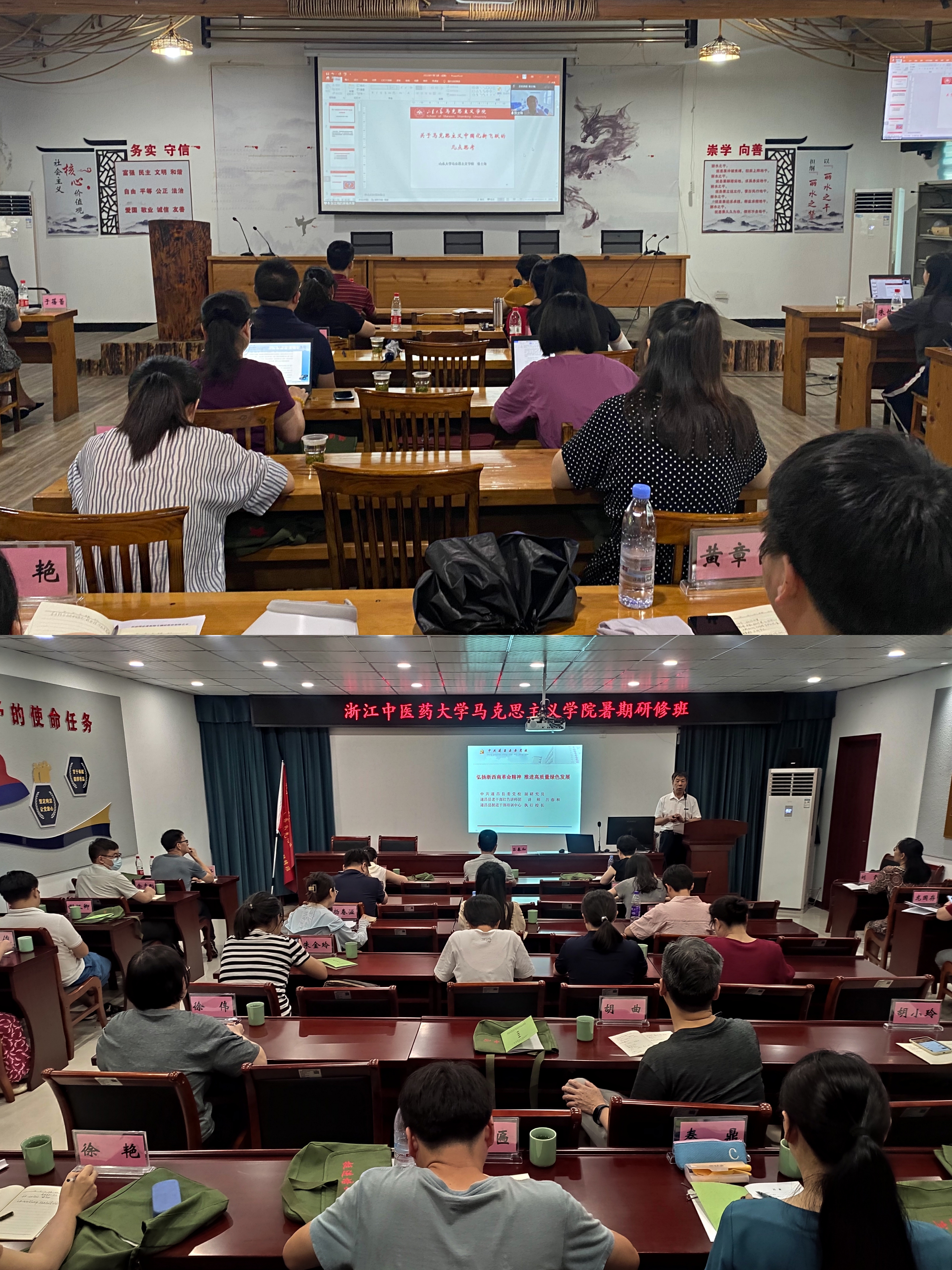 一是专家辅导促研学,扩大教师理论视野。研修期间,遂昌县委党校副研究员吕春和、浙江省委宣传部理论处处长郑毅、山东大学必一运动经理张士海教授应邀分别以《弘扬浙西南革命精神,推进高质量绿色发展》《意识形态领域新形势新问题》《马克思主义中国化新飞跃的几点思考》为题作了辅导讲座,扩大了参训教师的理论视野。