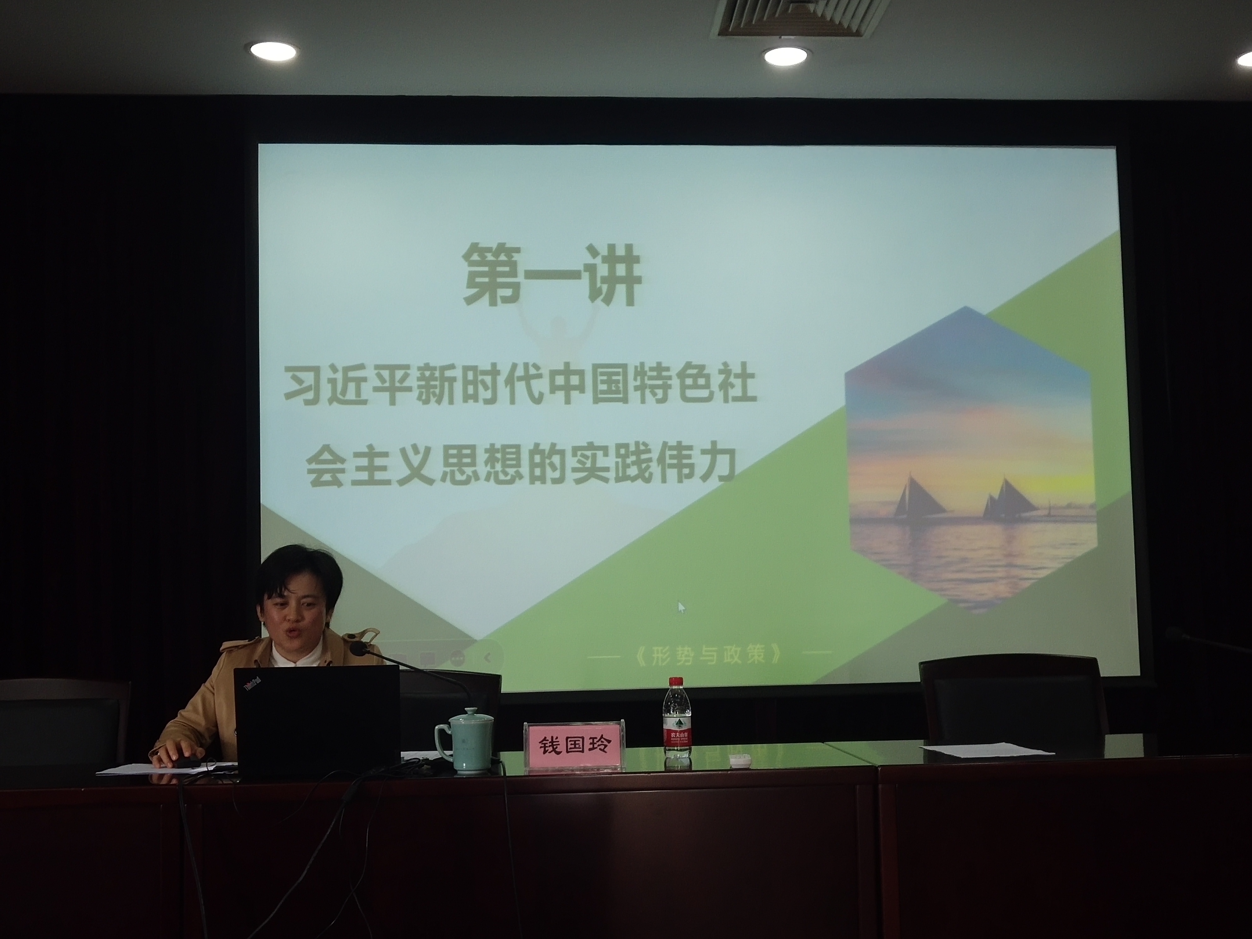会上,必一运动徐艳副教授、杨亮副教授和钱国玲博士分别就《领航向 擎蓝图 开新篇——学习中国共产党第二十次全国代表大会精神》《建设全国统一大市场的理论逻辑和推进方向》和《习近平新时代中国特色社会主义思想的实践伟力》三个教学专题为全校形势与政策授课教师作了专题辅导。