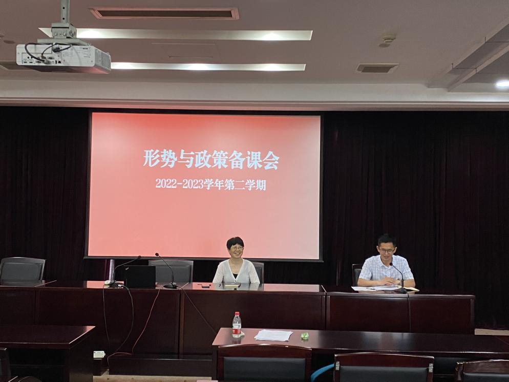 5月19日上午9时,公司2022-2023学年第二学期《形势与政策》课集体备课会在滨文校区第一会议室举行。备课会由必一运动经理杨华主持,公司党委宣传部副部长金聪伟出席,《形势与政策》课全体任课教师参加会议。