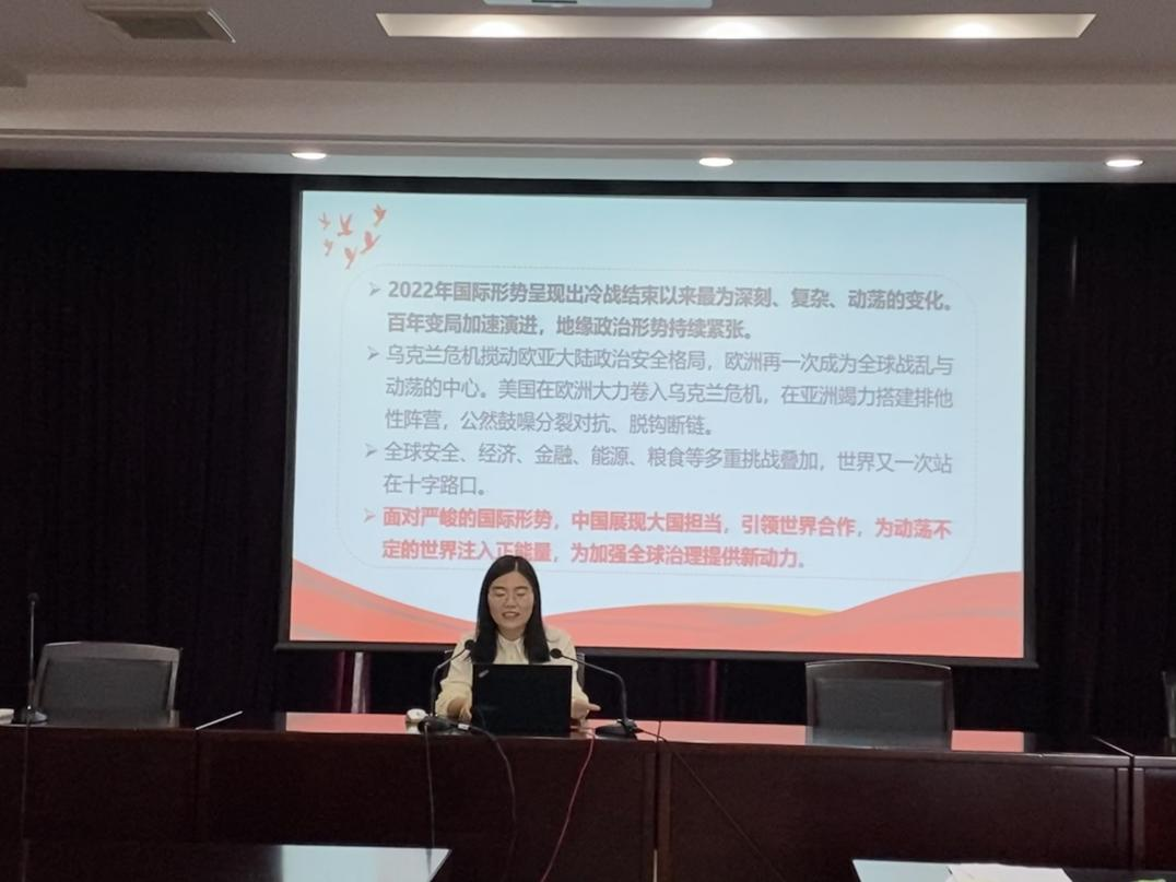 会上,必一运动胡小玲、陈冬梅和朱金玲三位老师分别就《实施科教兴国战略、强化人才资源支持》《国际局势与中国外交》和《立志复兴伟业,踔厉奋发前行》三个教学专题为全校形势与政策授课教师作了专题辅导。