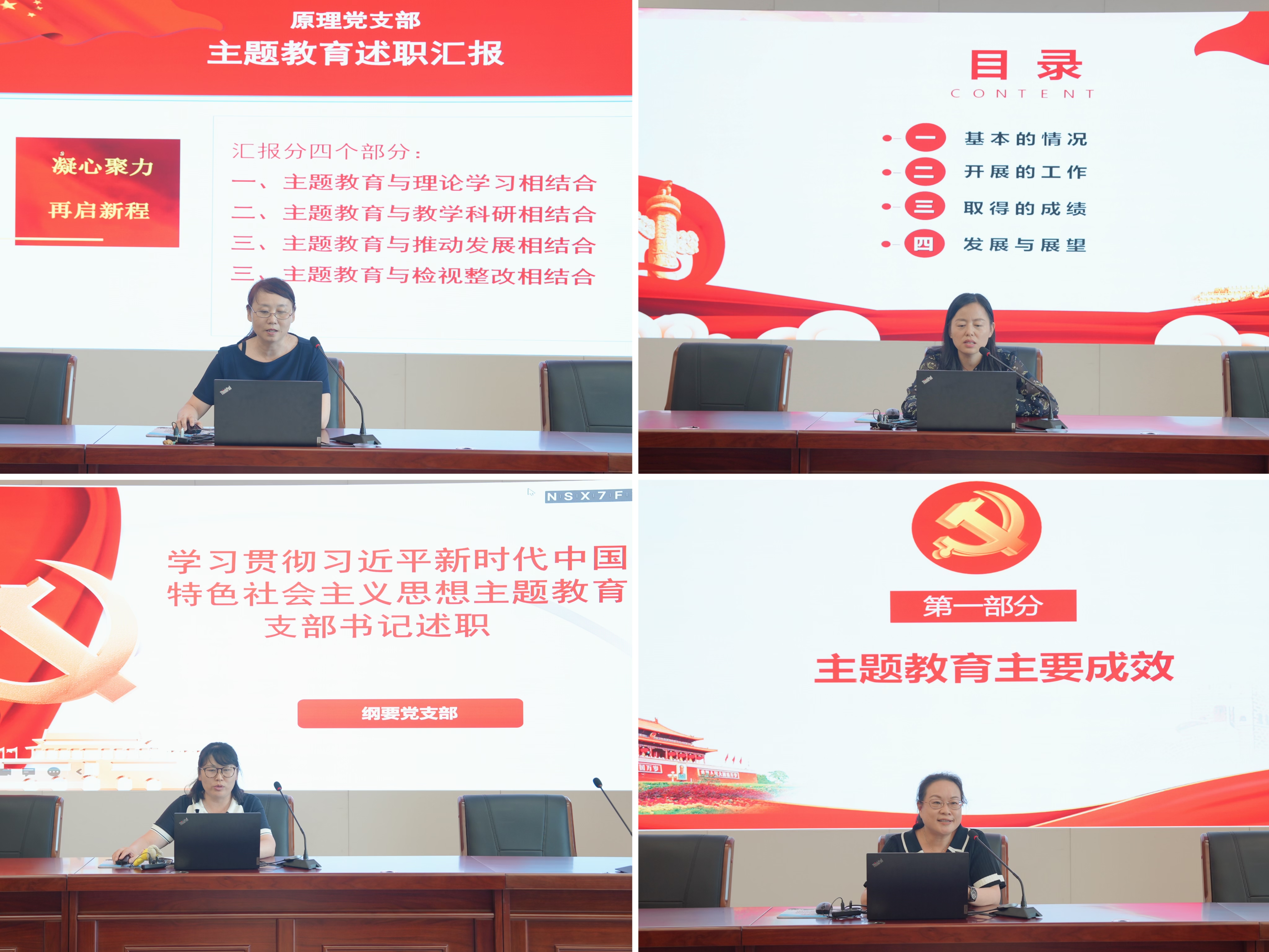 会上,原理党支部书记秦鼎、概论党支部书记徐艳、纲要党支部书记龙国存、德法党支部书记汪向红先后述职,汇报了所在党支部的主题教育开展情况、所取得的成绩、存在的主要问题和下步整改措施。公司党总支成员、党支部书记、党支部代表根据述职情况对四个支部的工作进行了认真评议。方年根对四位支部书记的述职给予了充分肯定,认为支部表现越来越好、支部书记越来越能、工作成效越来越显,达到了引领人、激励人和启发人的目标。成绩可喜可贺,点赞各位书记。希望大家既再接再厉、互相学习、共同进步,又针对存在的问题不足积极做好整改,用党建引领支部各项工作,既促进个人成长进步,又推动事业快速发展。
