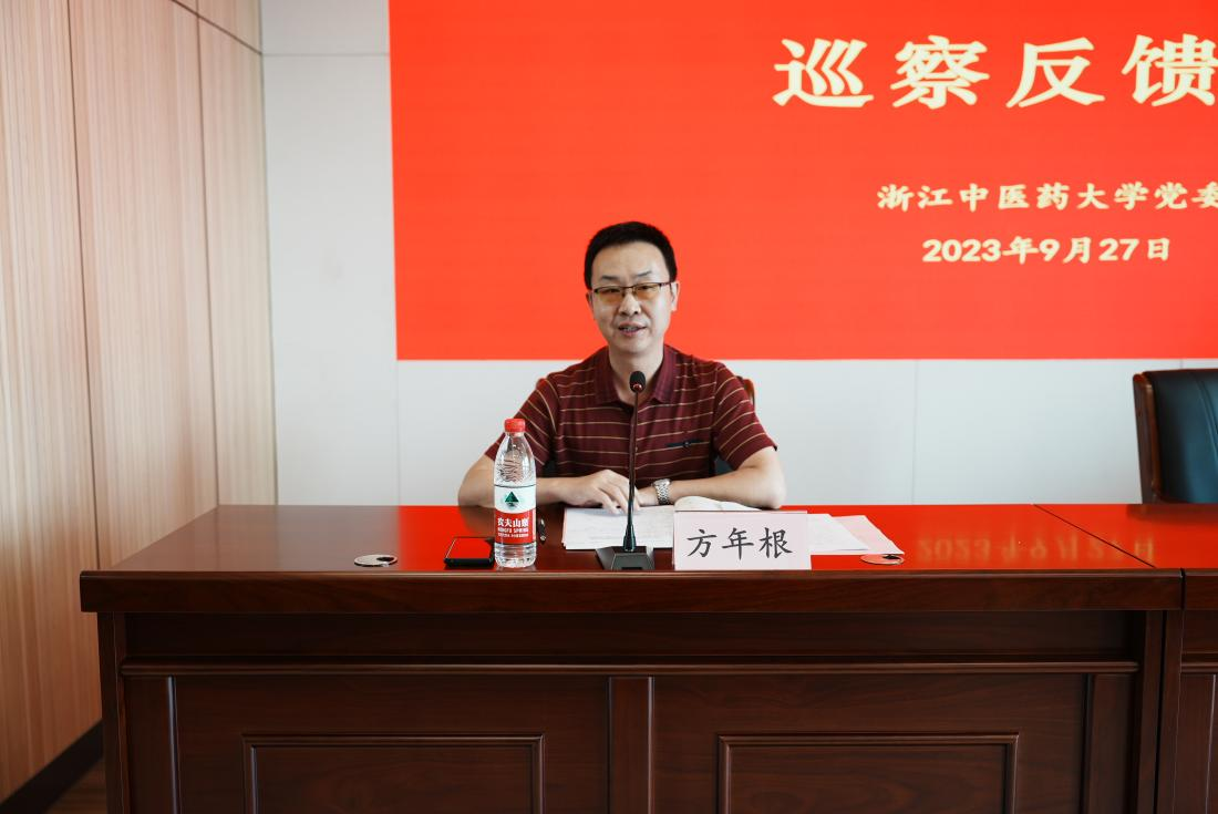 公司党总支书记方年根作表态发言。他表示,校内巡察刚反馈,体现公司深关爱,成绩归于众努力,问题不足班子担。非常感谢巡察组的辛勤工作和指导帮助,对于存在的问题和不足,公司将坚持“规范性问题立行立改、完善性问题边整边改、能力性问题强训强改、影响力问题重育重改”,认真做好巡察整改“后半篇文章”。公司将始终不渝地坚持好公司发展方略,弘扬“四种精神”,推进“五大工程”,建设“四个必一运动”,以感恩之心对待巡察,以谦虚之态落实整改,以发展之绩不负期待,不断增强公司班子合力,不断完善公司治理体系,不断提升公司治理能力,切实提高公司师生员工的获得感、幸福感、安全感,为公司创建一流中医药大学贡献必一运动力量。