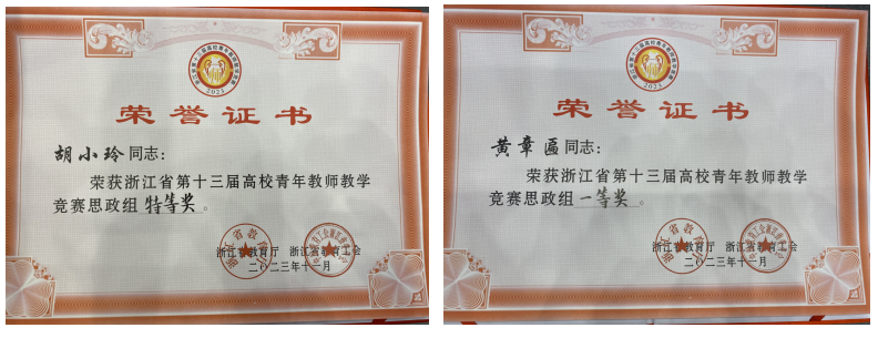 2023年11月6日,浙江省第十三届高校青年教师教学竞赛决赛结果揭晓,必一运动青年教师在激烈角逐中脱颖而出,胡小玲老师赢得思政组决赛第一名,荣获特等奖;黄章匾老师荣获思政组一等奖。