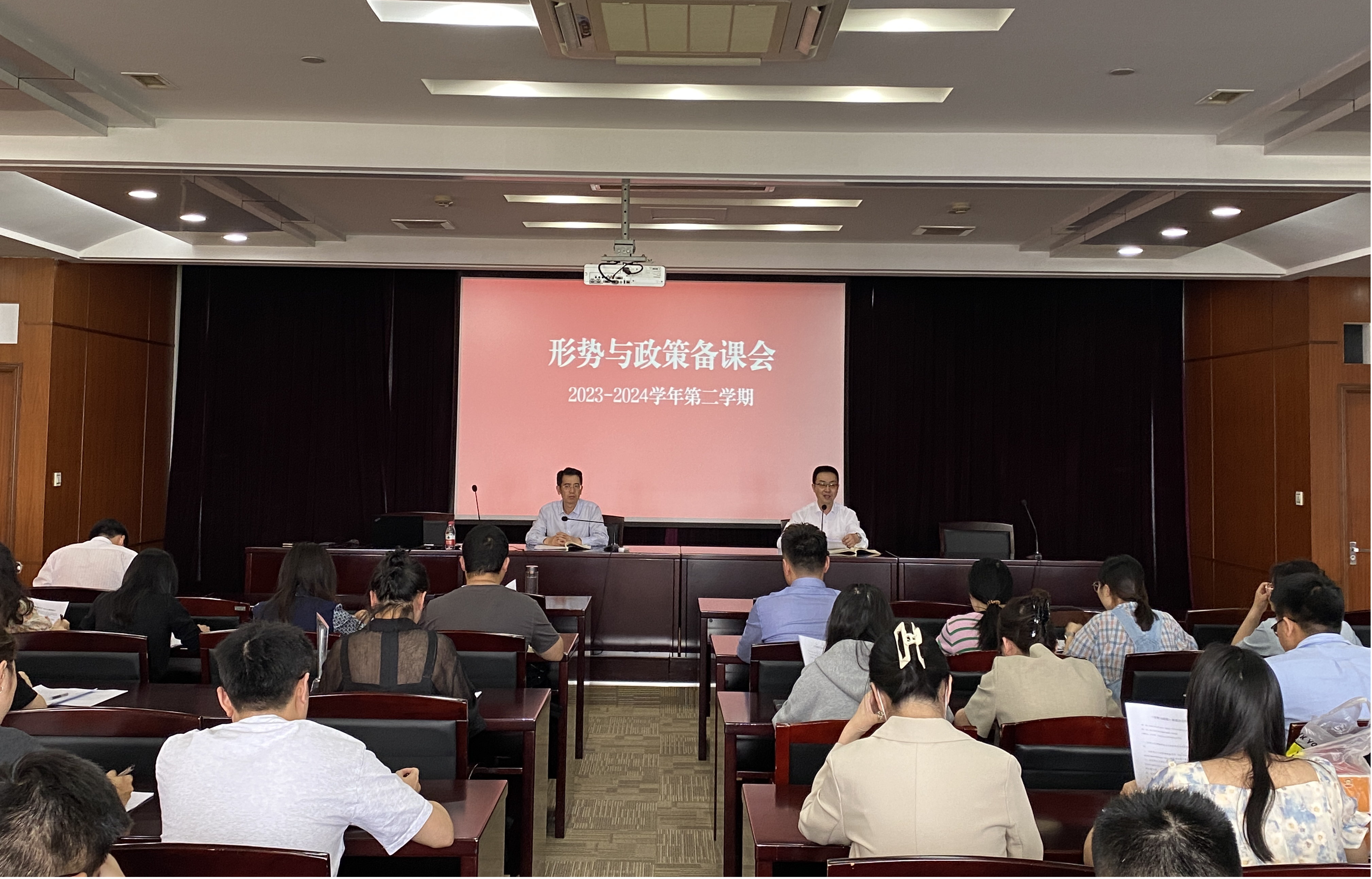 5月10日下午,公司2023-2024学年第二学期《形势与政策》课集体备课会在滨文校区行政楼八楼第一会议室举行。备课会由公司党总支书记方年根主持,公司党委委员、宣传部部长马重阳出席,《形势与政策》课全体任课教师参加会议。