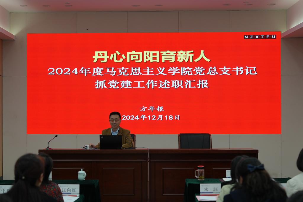 会上,公司概论党支部书记徐艳、原理党支部书记秦鼎、德法党支部书记汪向红、纲要党支部书记龙国存、研究生党支部书记韩奥林先后上台述职,总结回顾主要工作,查找分析问题短板,提出工作努力方向。方年根代表公司党总支向全体教职员工进行了2024年度党总支书记抓党建工作述职。
