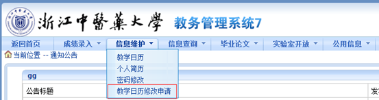 1.登陆正方教务管理系统(http://zfxk.zjtcm.net)→信息维护→教学日历修改申请,即可见教学日历调整窗口。