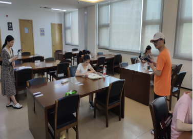 7月14日,本着对“万事开头难”的深刻认知,实践团果断开展了第一次拍摄活动。在邓老师的协助下,本团队与另一支实践团队合作,初步完成了有关图书馆不文明现象的视频制作。