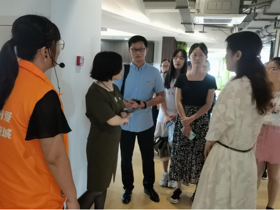 授牌仪式后,专业热情优秀的社工小贺为我们讲解了吴兴区社会组织党群服务中心开展的各项工作。他们将社区的服务工作命名为“城市温度26℃”,26℃是人体感到最舒适的温度,也意味着社区服务工作将给予服务对象最舒适的心灵与身体感受,切身为社区民众提供帮助。社区以“益城、益品、益家人”为主题。益城是指吴兴区在2017年7月被国家民政部确定为首批全国街道服务管理创新实验基地。益品是指吴兴区的公益慈善文化品牌——“梧桐树”,他们以“服务、凝聚、创新、协同”为宗旨,面向大众服务大众。益家人则是社区服务追求的终极目标,希望通过社区服务建立人与人之间亲切友好的氛围,宛如家人一般相亲相爱。
