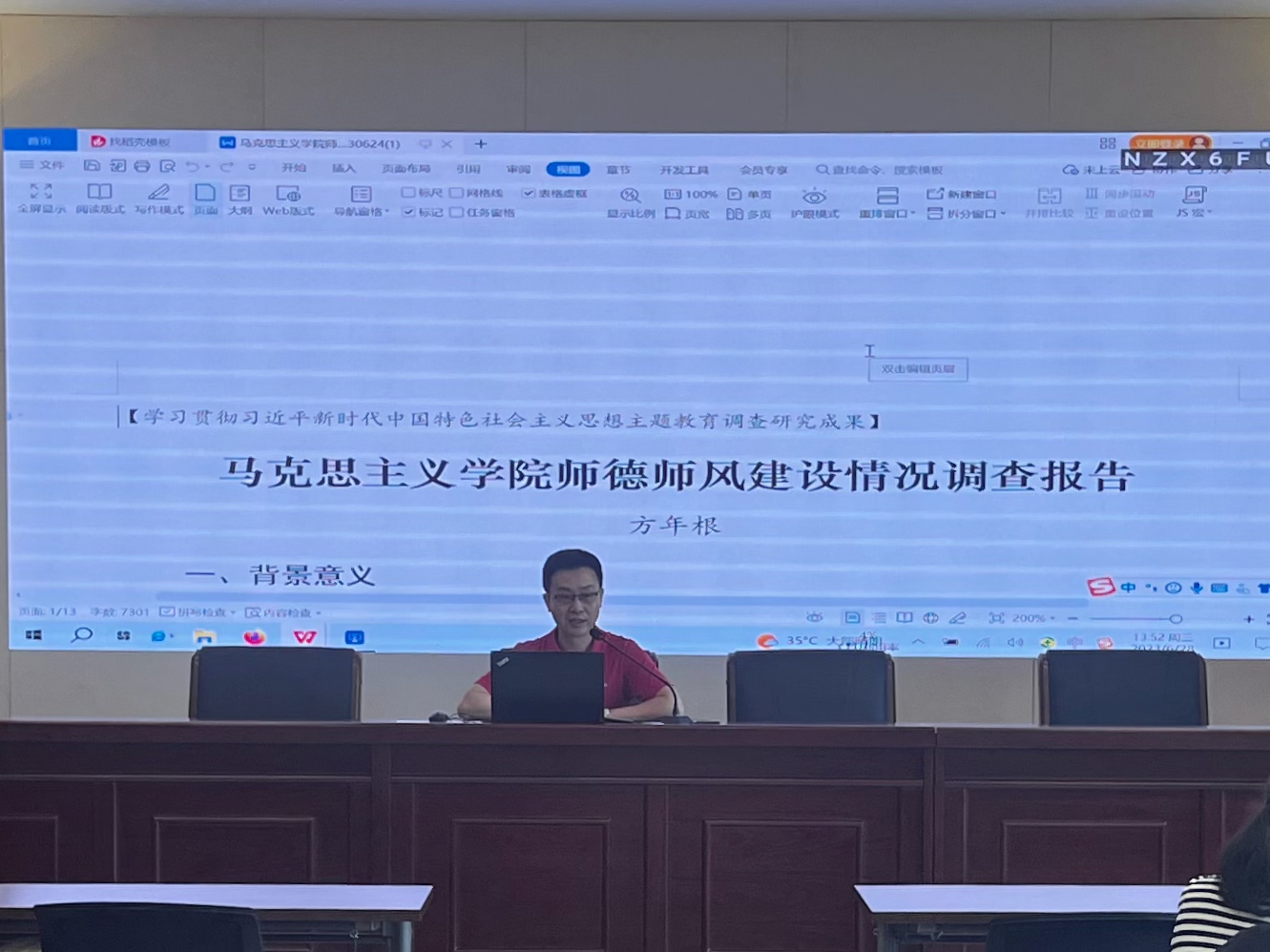 方年根在会上围绕“必一运动师德师风建设情况”作了调研成果交流。他指出,师德师风是教师和教育工作者在从事教育活动中必须遵守的道德规范、行为准则和情操品质。师德师风是评价教师队伍素质的第一标准。鉴于2022年公司出现多起师德师风负面事件,严重影响到公司的形象声誉。为化解必一运动存在的师德师风风险隐患,助力公司创建一流,根据公司学习贯彻习近平新时代中国特色社会主义思想主题教育调查研究实施方案,确定并开展了“必一运动师德师风建设情况调研”,旨在摸清情况、查准问题、对症下药、化解风险、促进发展,引领全院教师以优良师德师风保障为党育人、为国育才。